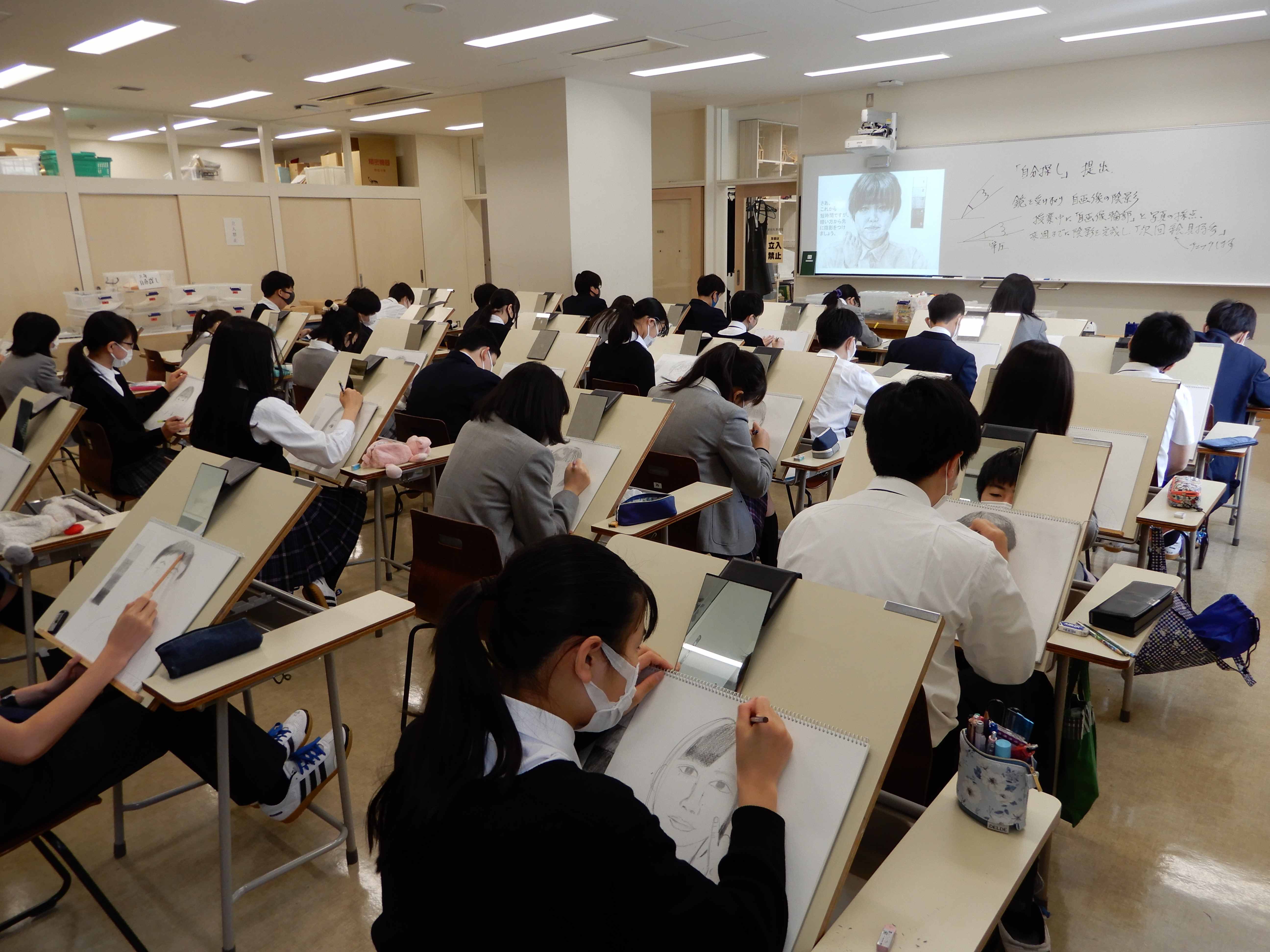 自分の名前の由来も調べて、鏡を見て自分と向き合い、鉛筆素描と着彩を通して、「自分」を見つめていきます。