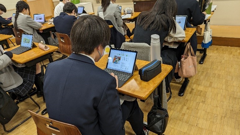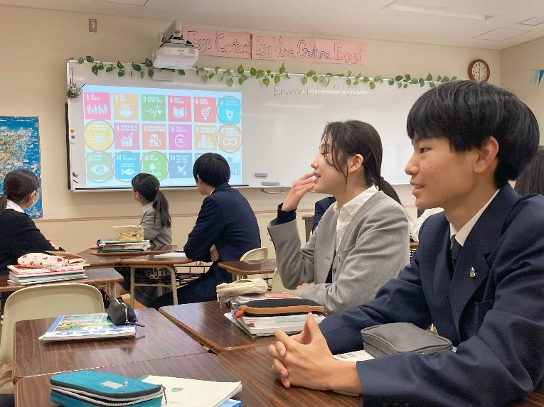 ネイティブ教員の指導のもと、基本的な話す聞くの練習だけでなく、スピーチを行なったり、調べた内容をパワポを使ってプレゼンしたり、動画を製作したりと、立体的なアウトプット活動を行っています。