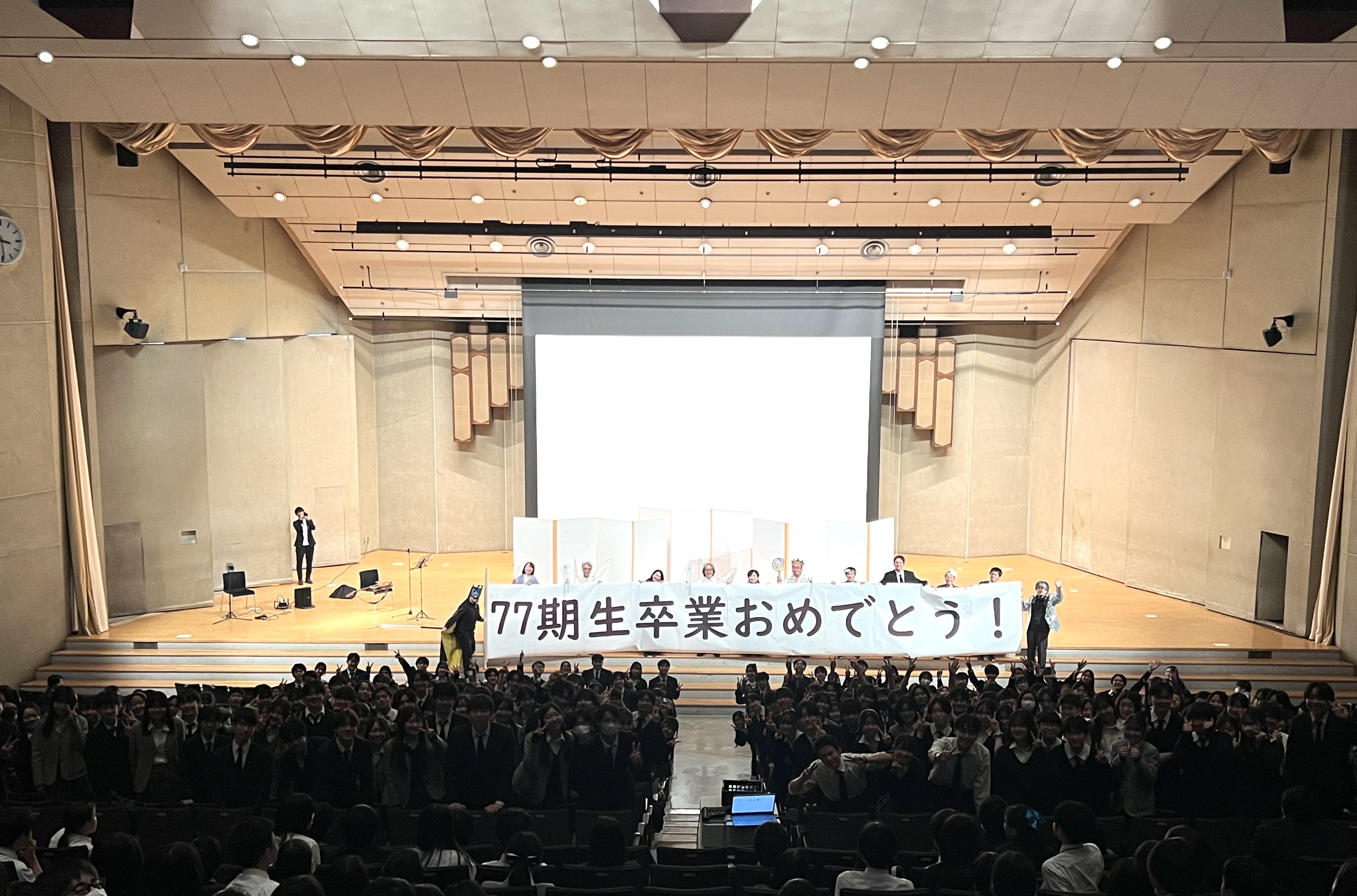 何ヶ月も前から準備していた学友会企画と、有志団体による発表、77期担任団によるサプライズ企画などが行われました。