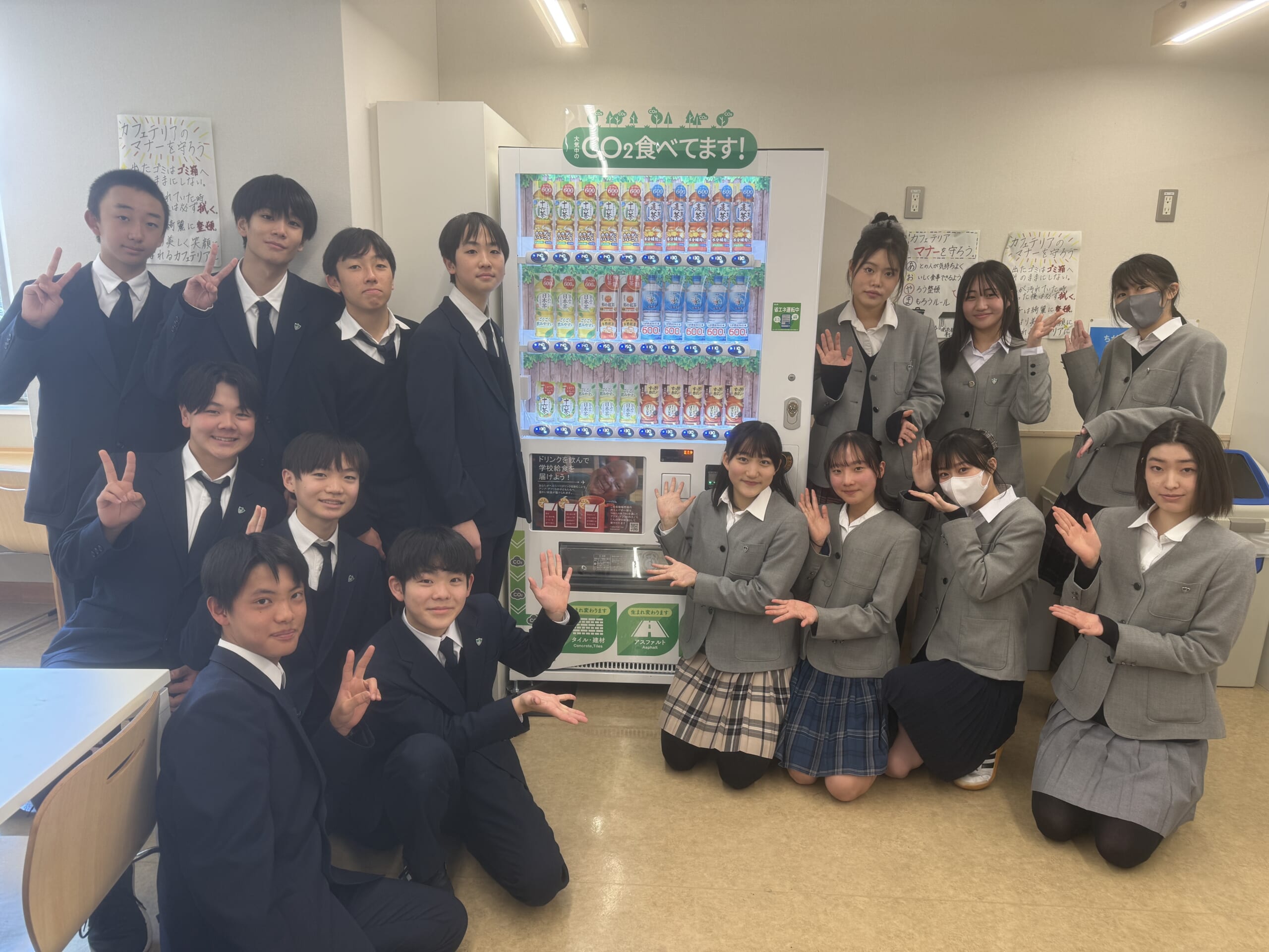 ようやく設置された自動販売機が、多くの生徒に利用されることを願っています。