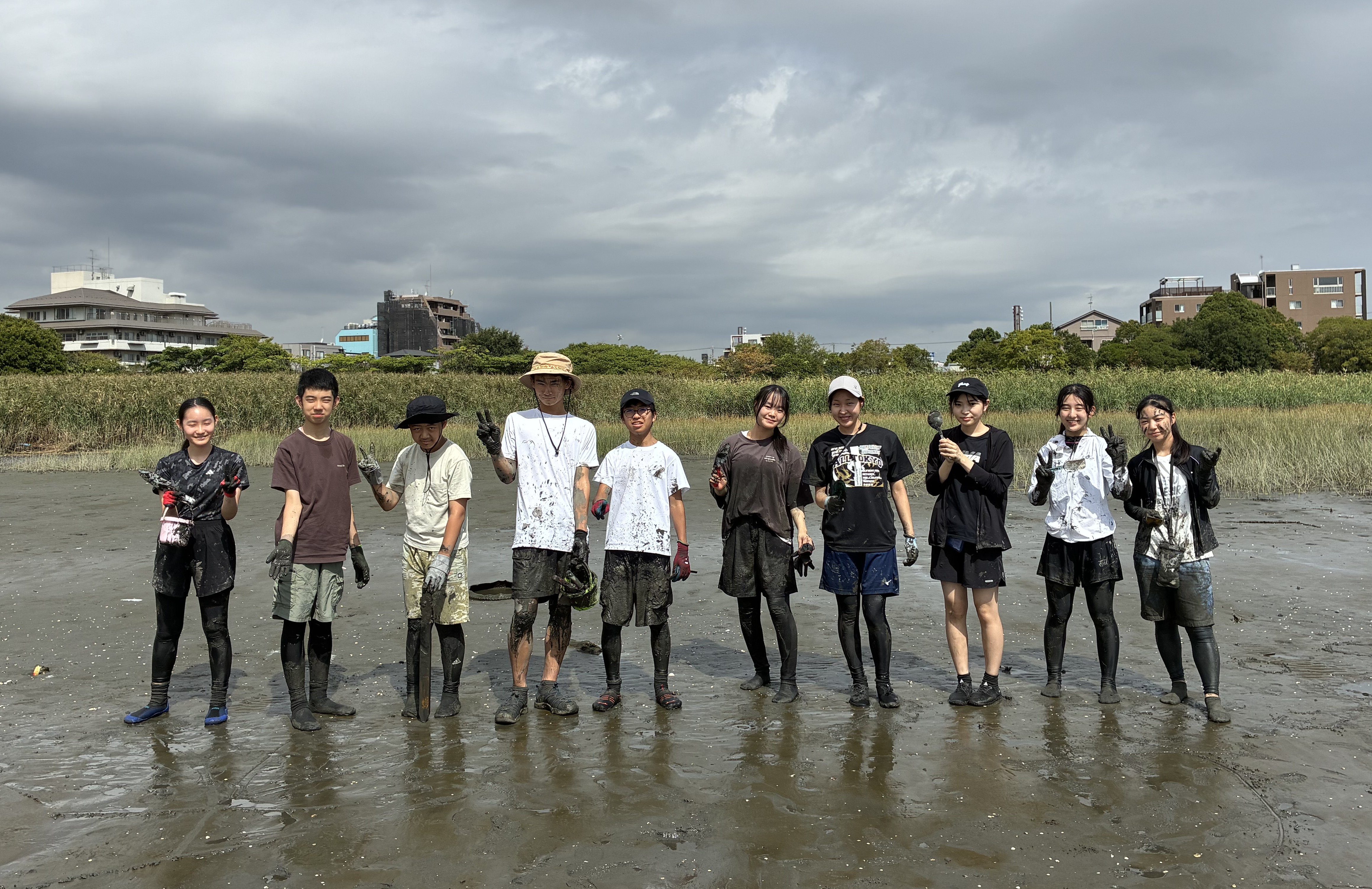 干潟の観察会は今年度2回目の開催で、今回訪れた大師橋干潟は膝まで沈むような泥の環境でした。