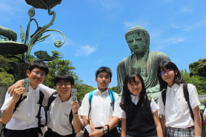 TOP6月1日(金)、1年生はHRデーで江の島・鎌倉を訪れました。理科や地理・歴史でそれぞれ事前学習を行い、5~6人のグループで訪れる場所やコースを計画し、自分たちの興味・関心のある観光スポットを巡りました。お天気に恵まれ、生徒たちは楽しそうに活動し親睦を深めていました。