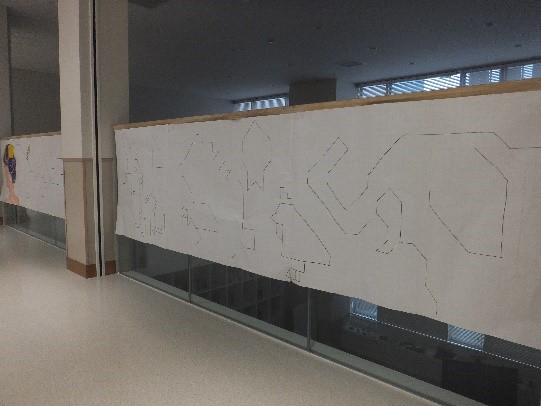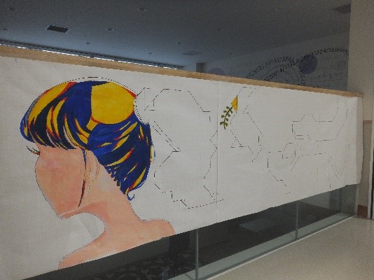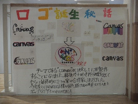 5階の3年E組~G組にかけての廊下にモザイクアートを展示しています。モザイクアートとはたくさんの写真を使って一枚の写真や絵にするものです。今回は学校行事の写真をお借りして大きな二つの木を表現しています。またシールを貼って春夏秋冬を表現しているコーナーもあります。また今年度のテーマcanvasのロゴ誕生秘話として、ロゴの原案も展示してあります。ぜひご覧ください。