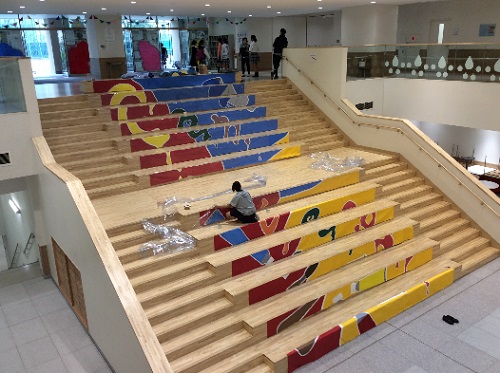 演技・演奏団体の発表の場となる大階段付近を、展示・装飾パートがカラフルに装飾してくれました。