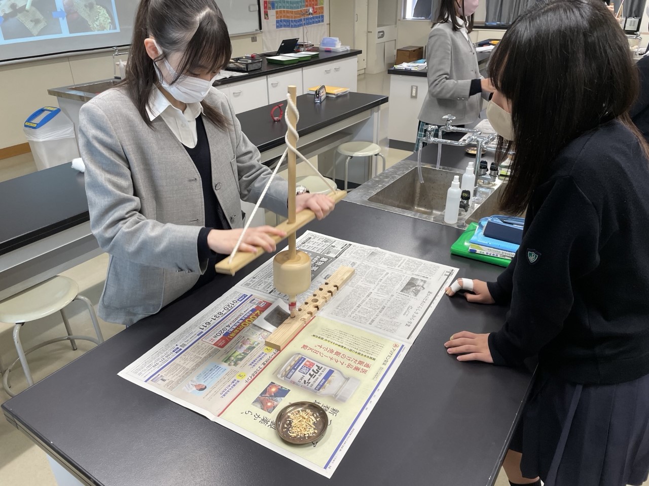 火起こし器を使用し、運動エネルギーから熱エネルギーへの変換を体験します。人類が昔から利用していた熱エネルギーの歴史や今日なくてならない電気エネルギーの発電方法や活用方法について授業を通して学びます。