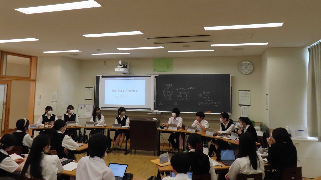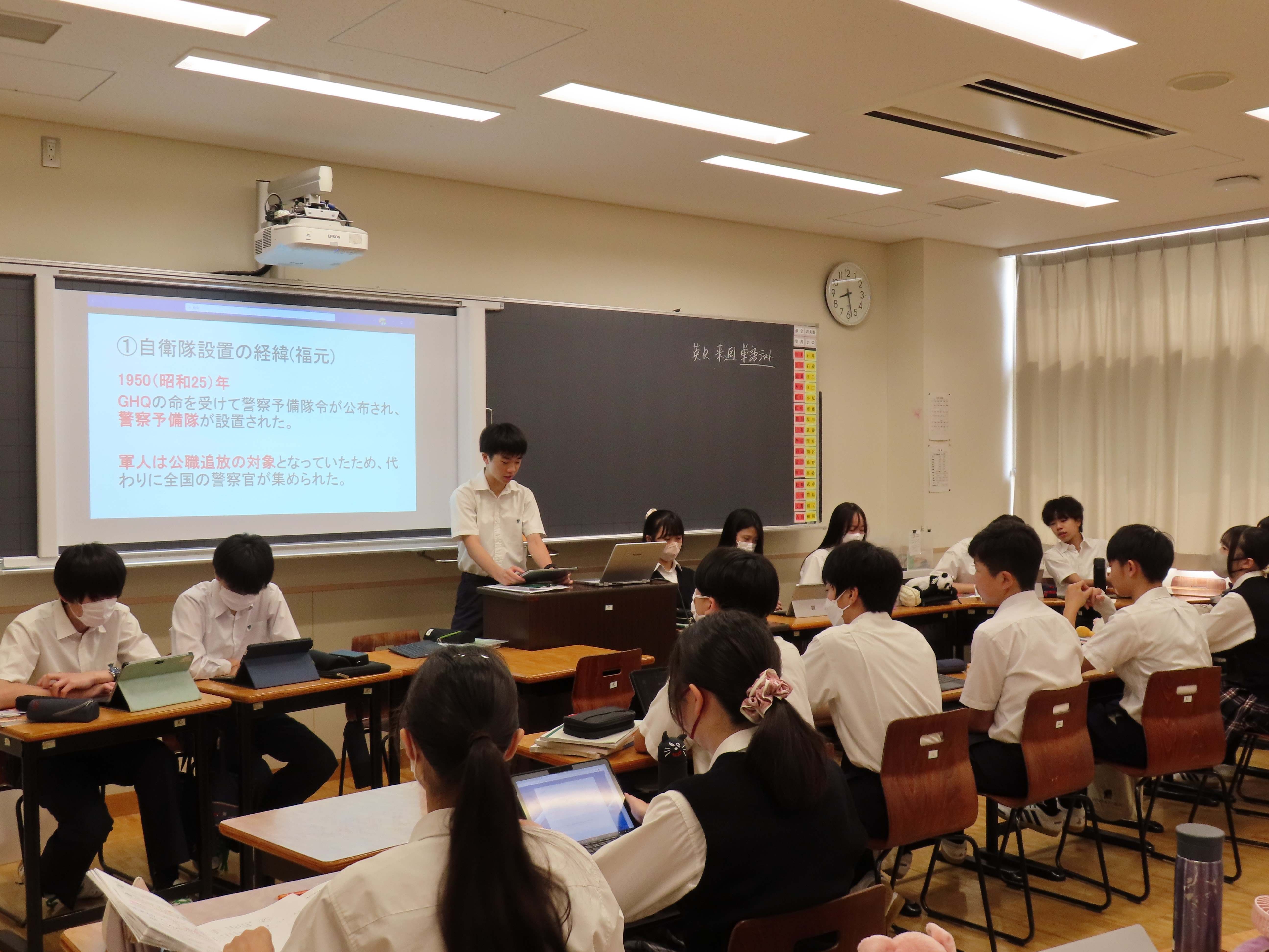 政治・経済を学ぶ。時事問題も取り上げ、現在の世界を考える。平和学習にも力を入れて取り組んでいる。